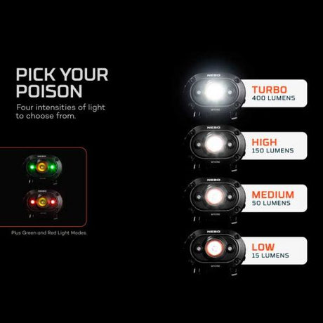 Nebo mycro headlamp | rechargeable head torch 400 Lumens LED NEB-HLP-0011-G