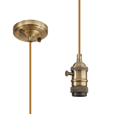 Rae Switched Pendant Light Kit 1.5m, 1 x E27, Brass / Pale Gold 2 Core Twisted Cable
