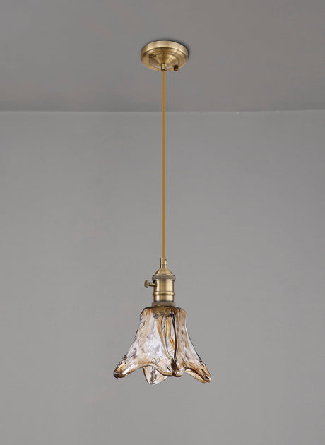 £77.88 + VAT (£93.46)Unit price /UnavailableIn stock (24 units)Rae Switched Pendant 1.5m, 1 x E27, Antique Brass/Brown Flower Glass