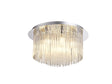 The Baker flush ceiling lights are available in either a 4 or 6 light version. The round polished chrome plates offer a simplistic neutral setting to hang the generous number of clear glass rods which are positioned in a circular format of rows across the frame. The glass pieces diffuse the light emitted from the G9 lamps which are encased to provide the fittings with an IP44 rating making the range suitable for bathrooms.