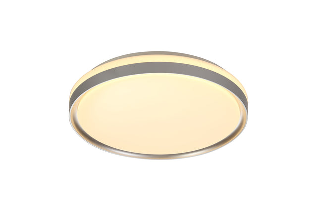 Lee Ceiling 39cm, 1 x 24W LED, 3 Step-Dimmable, 3000K, 1000lm, IP44, Silver/White Acrylic, 3yrs Warranty