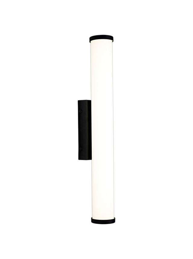 Wallace's tubular opal white diffusers ensure a complete ambient dispersal of lumination from the integral LEDs. The cool 4000K colour of the LEDs is the ideal temperature for IP44 rated bathroom fixtures where a bright clearer light is required. Three various wall lamps and a ceiling light are finished in polished chrome or sand black giving a further modern touch to the collection.
