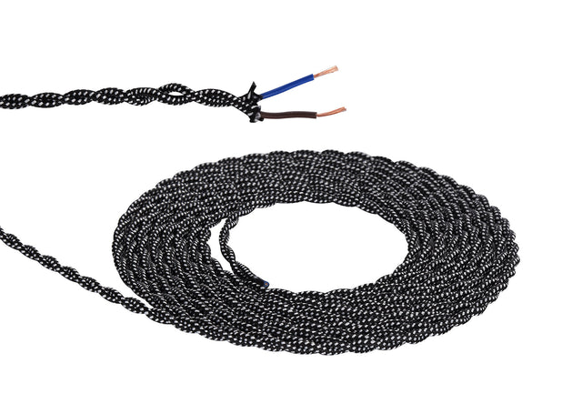 Robson 1m Black & White Spot Braided Twisted 2 Core 0.75mm Cable VDE Approved (qty ordered will be supplied as one continuous length)