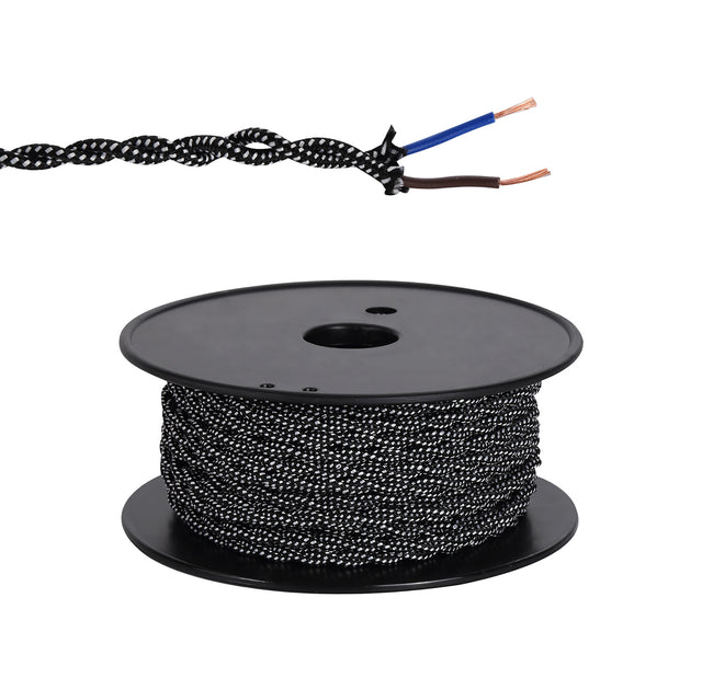 Robson 25m Roll Black & White Spot Braided Twisted 2 Core 0.75mm Cable VDE Approved