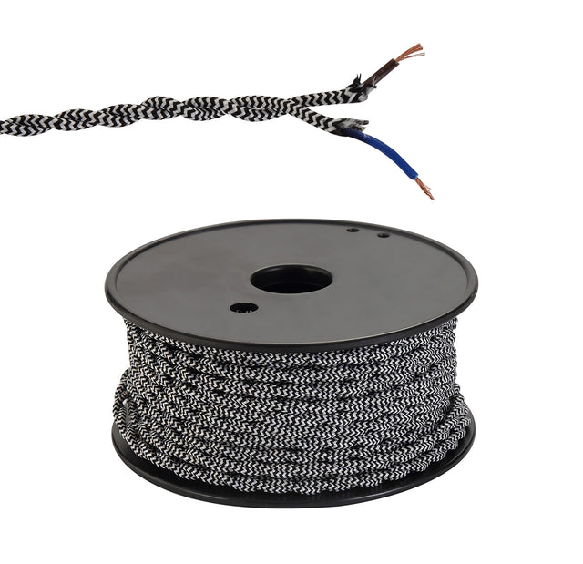 Robson 25m Roll Black & White Wave Stripe Braided Twisted 2 Core 0.75mm Cable VDE Approved