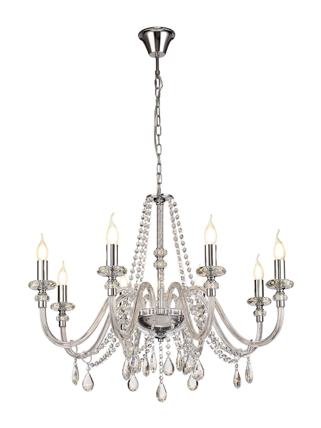 Hawley Chandelier Pendant, 8 Light E14, Polished Chrome/Clear Glass/Crystal, (ITEM REQUIRES CONSTRUCTION/CONNECTION)