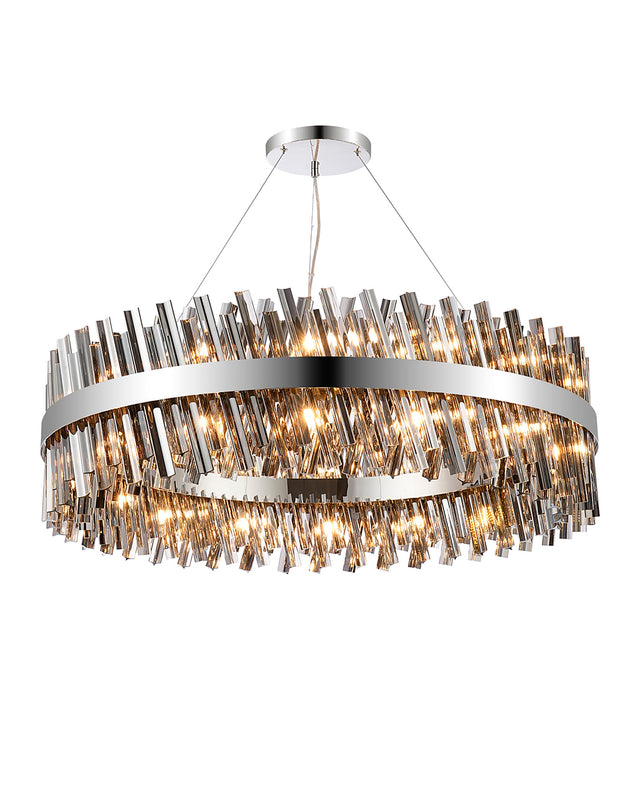 Melville 1m 32 Light G9, Pendant Round, Polished Nickel / Smoke Item Weight: 29.51kg