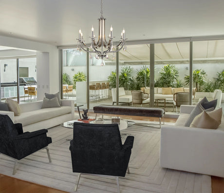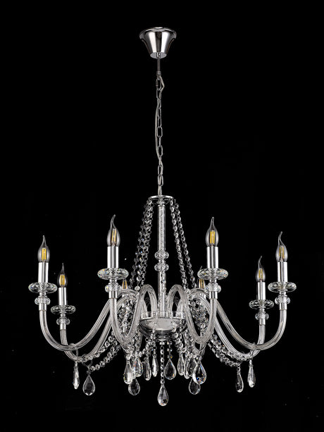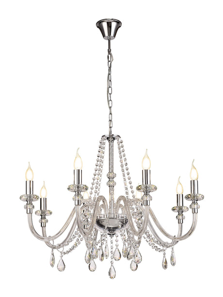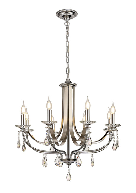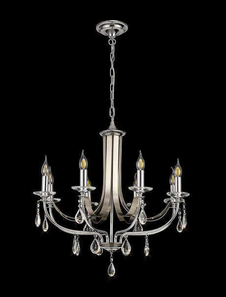 £683.33 + VAT (£820.00)Unit price /UnavailableVery low stock (7 units)Malone Pendant 8 Light E14 Polished Chrome/Satin Nickel/Clear Crystal