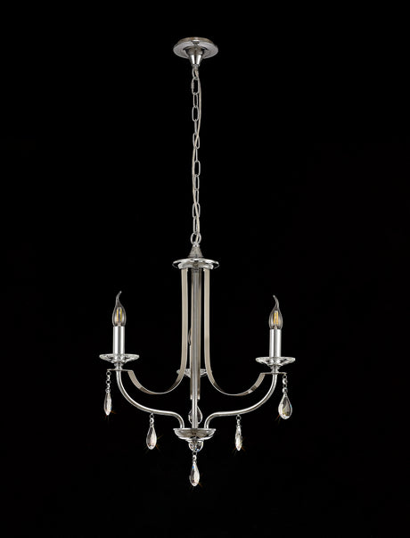 £301.67 + VAT (£362.00)Unit price /UnavailableLow stock (19 units)Malone Pendant 3 Light E14 Polished Chrome/Satin Nickel/Clear Crystal
