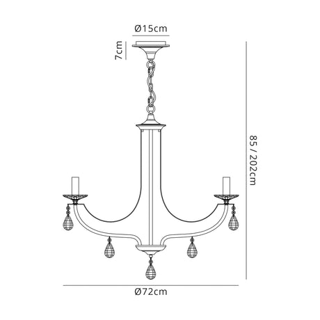 £458.33 + VAT (£550.00)Unit price /UnavailableVery low stock (5 units)Malone Pendant 5 Light E14, Polished Chrome & Satin Nickel/Clear Crystal