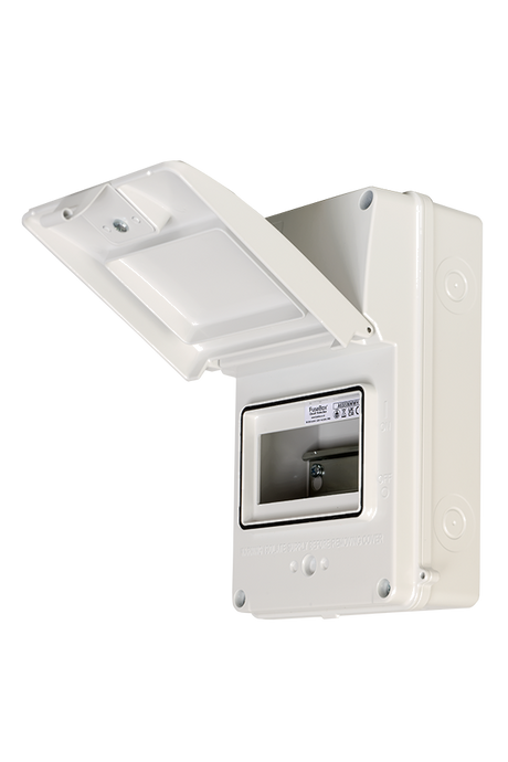 £45.00 + VAT (£54.00)Unit price /UnavailableFuseBox A65E06MGY - IP65 Grey 6-Module Consumer Unit
