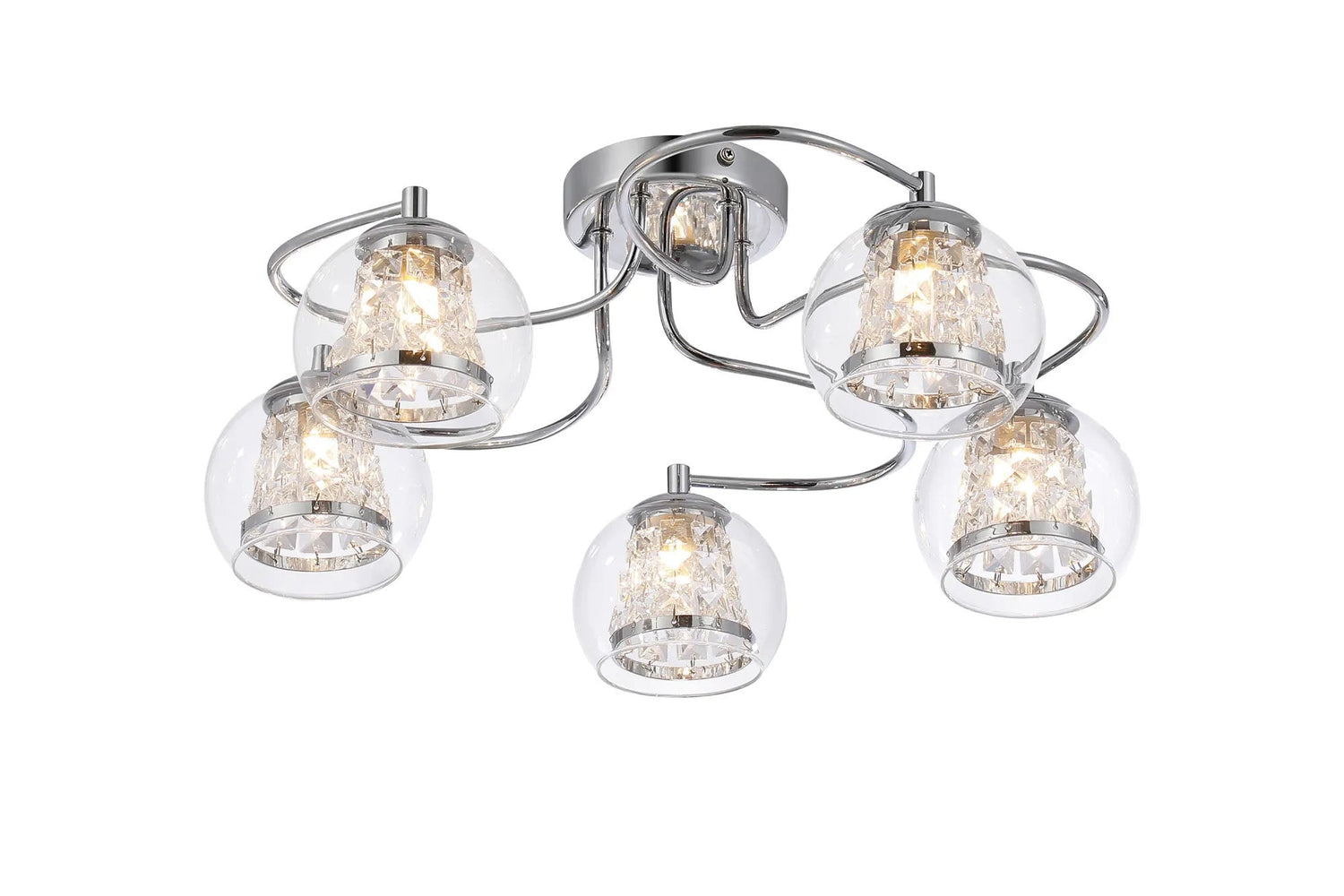 Astle Semi Ceiling, 5 x G9, IP44, Polished Chrome/Clear Glass/Clear Crystal