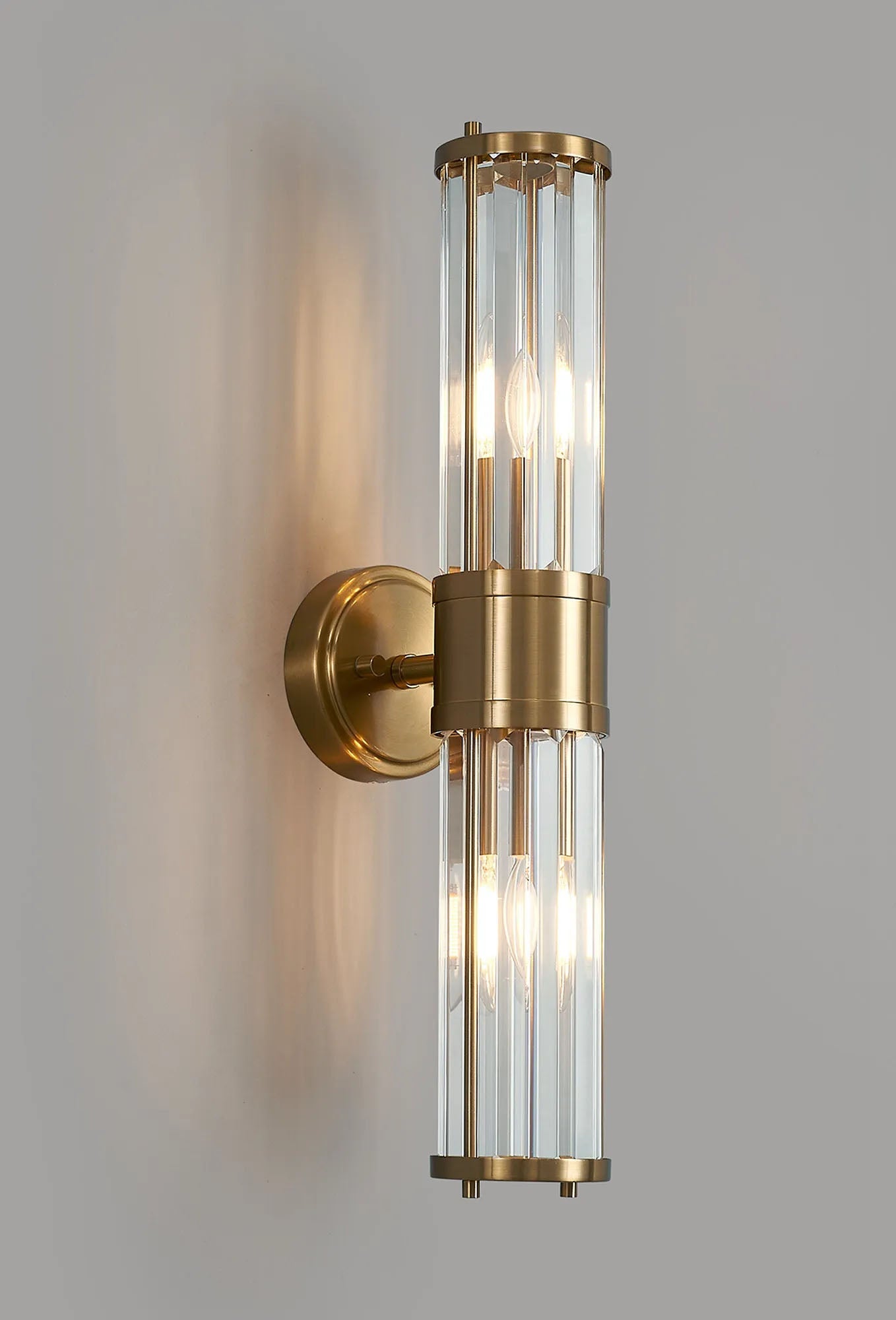 Mundie 2 Light Crystal Wall Up & Down, E14, IP44, Gold/Clear Crystal