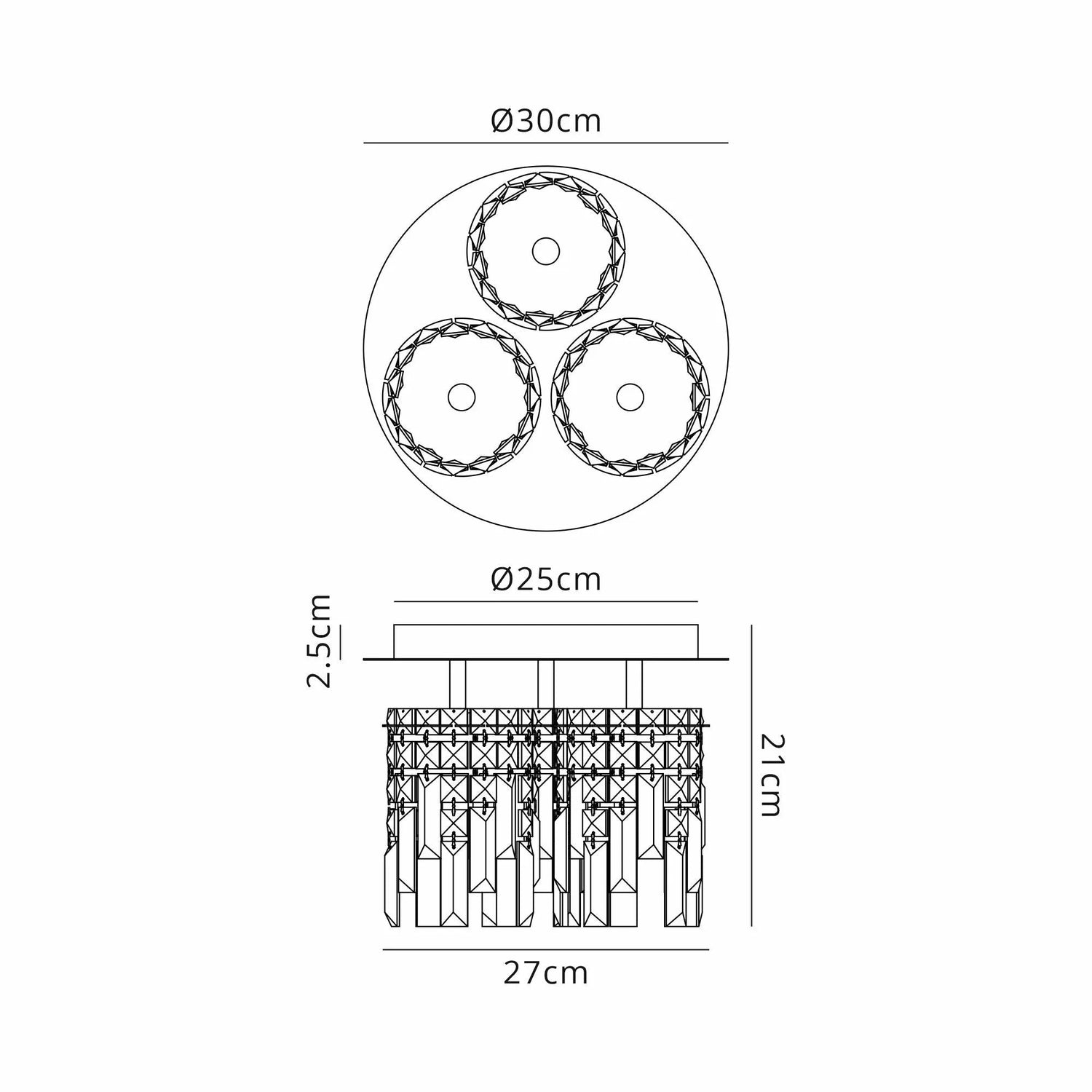 Styles 30cm Flush Ceiling Light, 3 x G9, IP44, Polished Chrome/Crystal