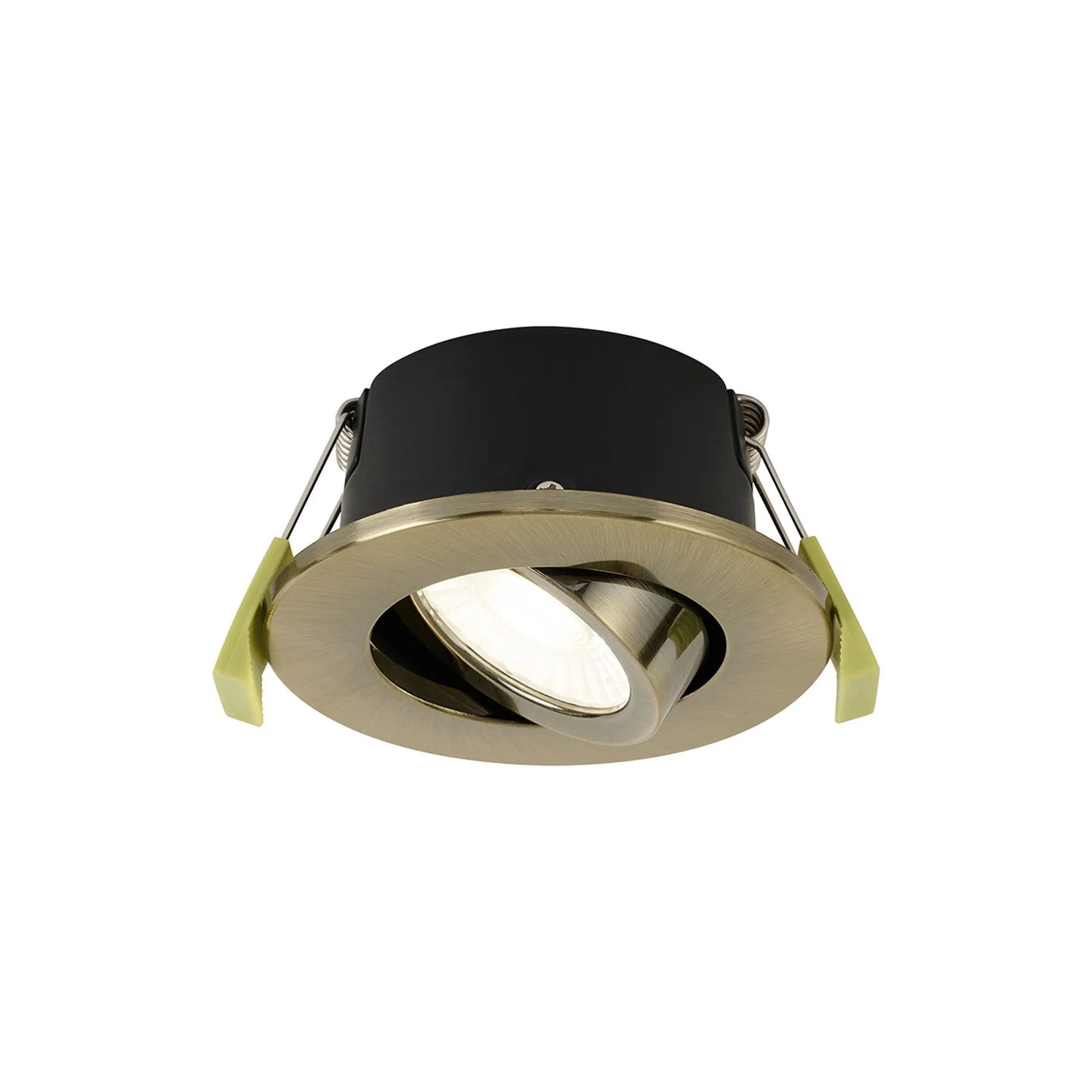 Channon 4/6/8W, Triac Dimmable 4CCT LED Fire Rated Adjustable Downlight, A.Brass Round Tilt, 400-800lm, IP65 DRIVER INC.