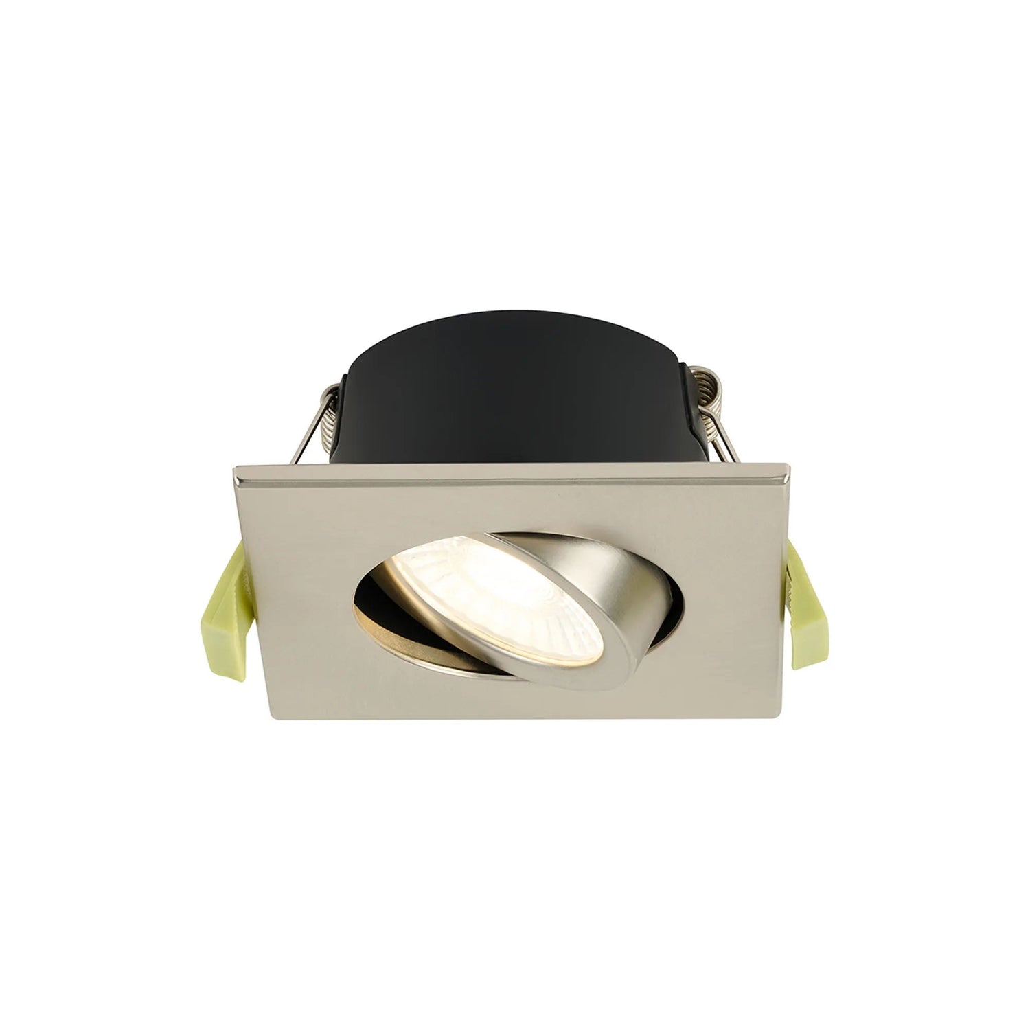 Channon 4/6/8W, Triac Dimmable 4CCT LED Fire Rated Adjustable Downlight, S.Nickel Square Tilt, 400-800lm, IP65 DRIVER INC.