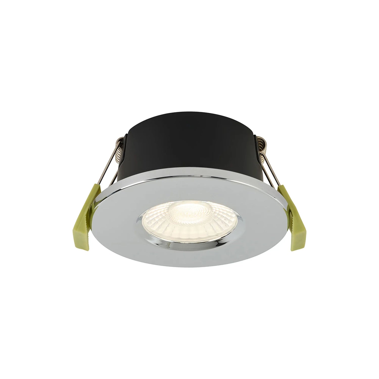 Channon 4/6/8W, Triac Dimmable 4CCT LED Fire Rated Downlight, Chrome Round Fixed, 400-800lm, IP65 DRIVER INC.