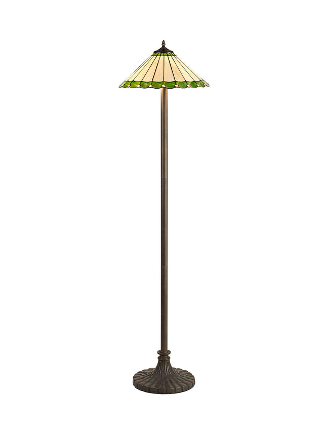 Williams 2 Light Stepped Design Floor Lamp E27 With 40cm Tiffany Shade, Green/Cream/Crystal/Aged Antique Brass