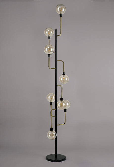 Gayle Floor Lamp, 8 Light G9, Matt Black/Antique Brass/Cognac Glass