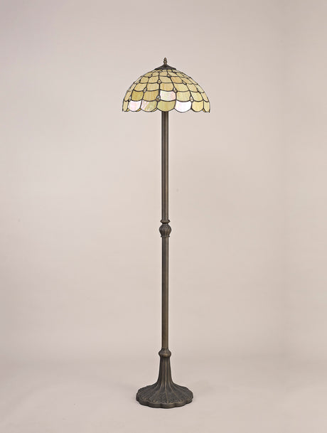 Brown Floor Lamp, 2 x E27, Sand White/Satin Nickel/White