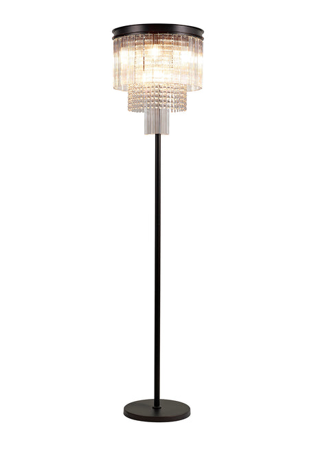 Ursem Floor Lamp, 2 Light E27, Matt Black/Crystal Sand Glass