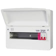 This consumer unit is supplied with an installation pack which includes a busbar, an icon label pack, and a grommet strip.