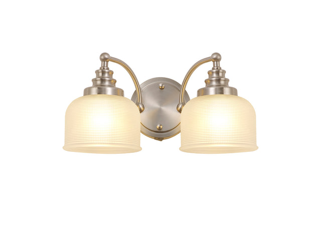 Gray Switched Wall Lamp 2 Light E27 Satin Nickel / Frosted Glass
