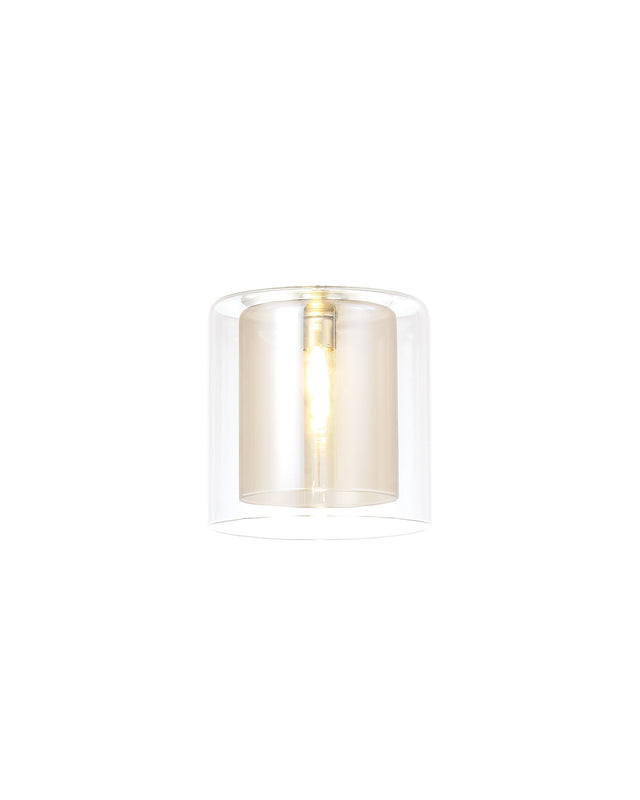 Lathen 140x140mm Medium Cylinder Clear Outer And Cognac Inner (H) Glass Shade