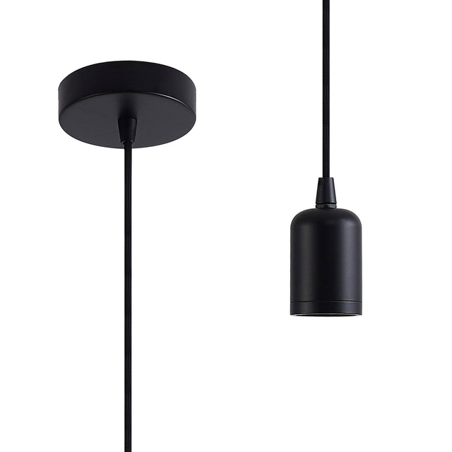 Robson 2m Suspension Kit 1 Light Black/Black Braided Cable, E27 Max 60W, c/w Ceiling Bracket & Deeper Shade Ring
