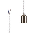 Robson E27 (Max 60W) Lampholder Brushed Nickel With 3m Silver Braided Twisted Cable & Deeper Shade Ring, Suitable For Shades & Cages