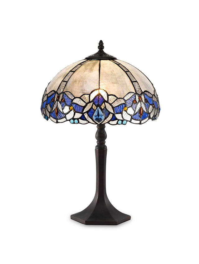Siddall 1 Light Octagonal Table Lamp E27 With 30cm Tiffany Shade, Blue/Clear Crystal/Aged Antique Brass