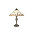 Williams 2 Light Curved Table Lamp E27 With 40cm Tiffany Shade, Grey/Cream/Crystal/Aged Antique Brass