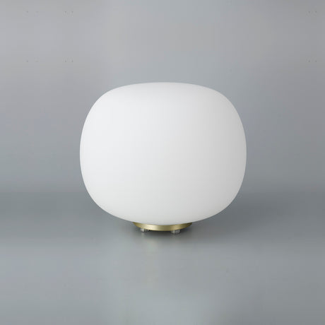 Cunnington Medium Oval Ball Table Lamp 1 Light E27 Satin Gold Base With Frosted White Glass Globe