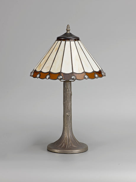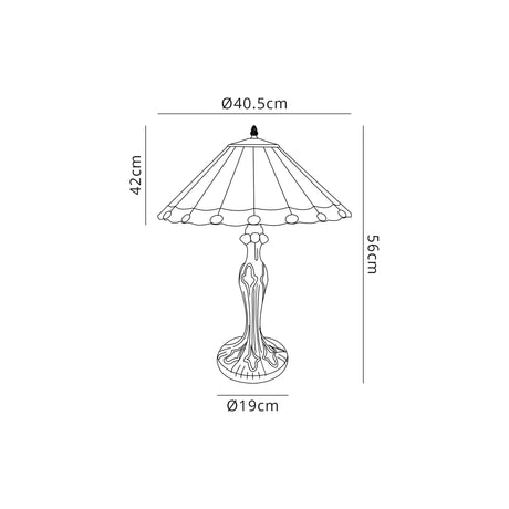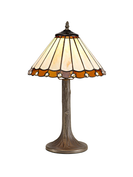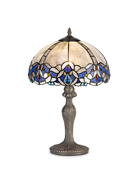 Siddall 1 Light Curved Table Lamp E27 With 30cm Tiffany Shade, Blue/Clear Crystal/Aged Antique Brass
