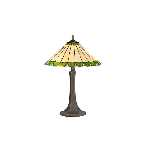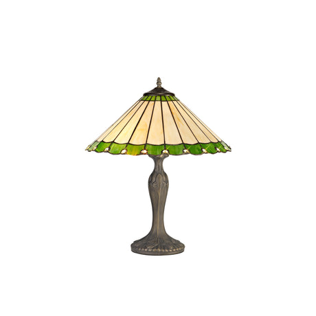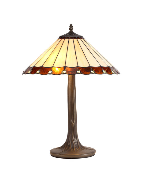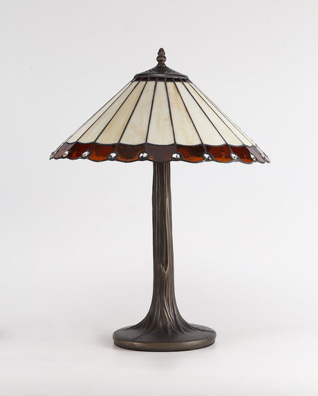 Williams 1 Light Curved Table Lamp E27 With 30cm Tiffany Shade, Red/Cream/Crystal/Aged Antique Brass