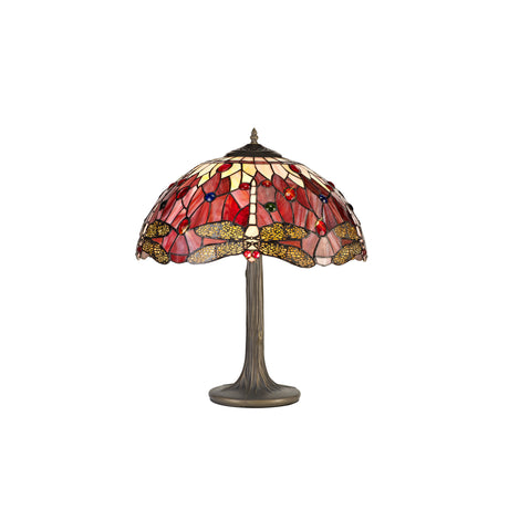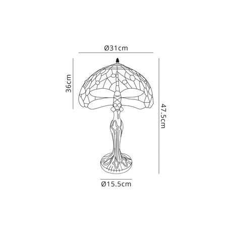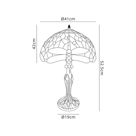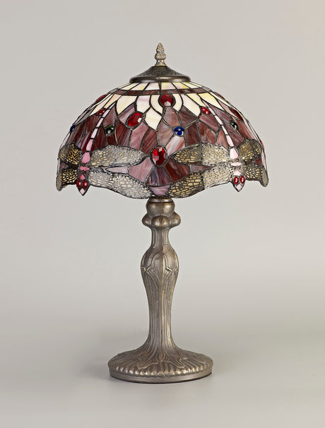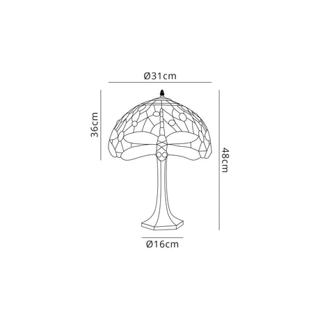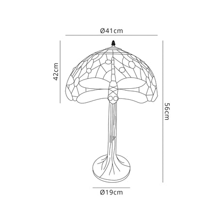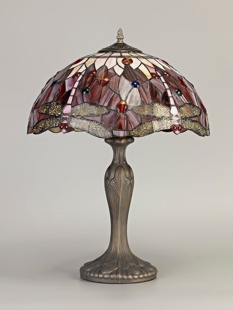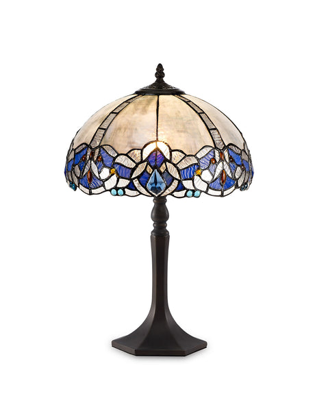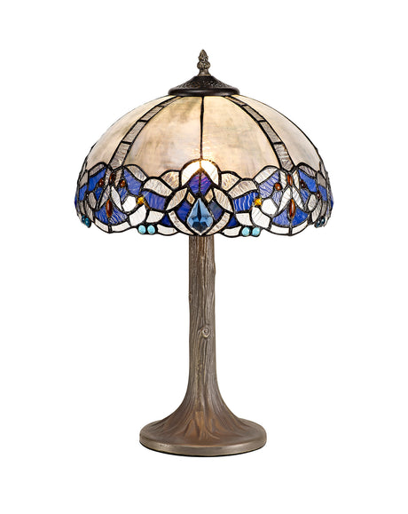 Siddall 2 Light Curved Table Lamp E27 With 40cm Tiffany Shade, Blue/Clear Crystal/Aged Antique Brass