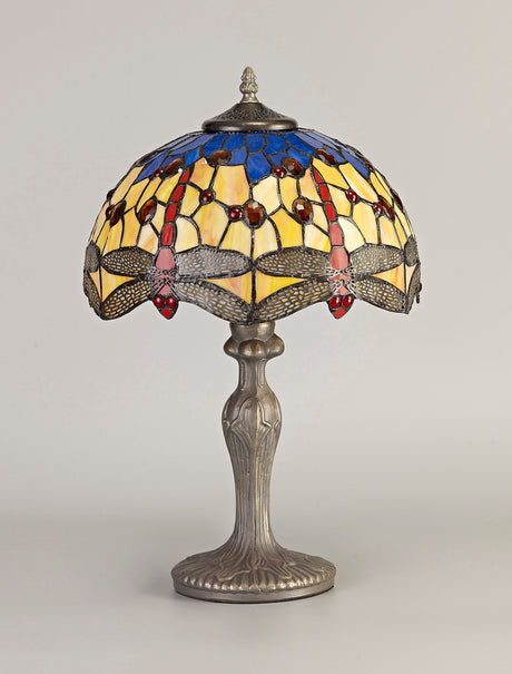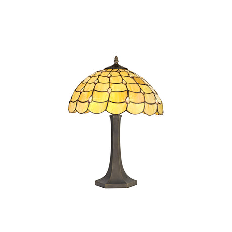 Finney 1 Light Curved Table Lamp E27 With 30cm Tiffany Shade, Beige/Clear Crystal/Aged Antique Brass