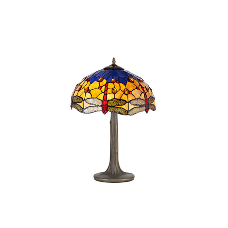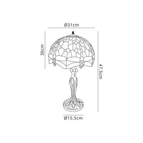 Finney 2 Light Curved Table Lamp E27 With 40cm Tiffany Shade, Beige/Clear Crystal/Aged Antique Brass