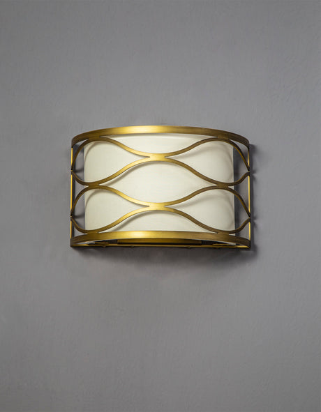 £40.00 + VAT (£48.00)Unit price /UnavailableIn stock (47 units)Hinnegan Wall Lamp 2 Light E14 Aged Gold / Cream Fabric Shade