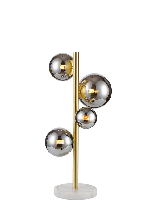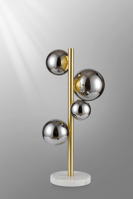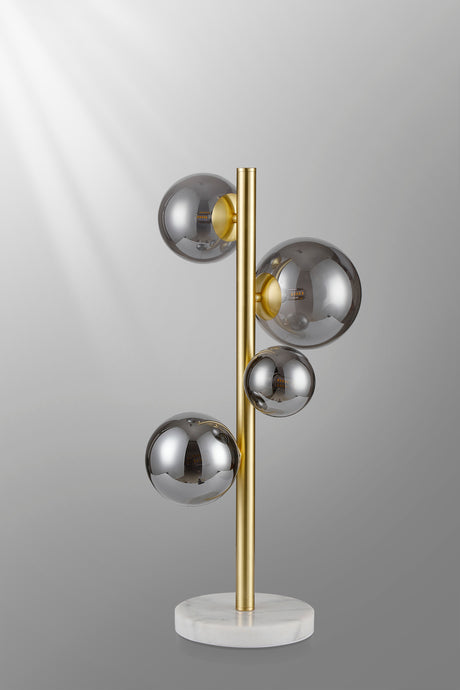 £116.67 + VAT (£140.00)Unit price /UnavailableIn stock (25 units)Ferguson Table Lamp, 4 x G9, Satin Gold, Smoke Plated Glass