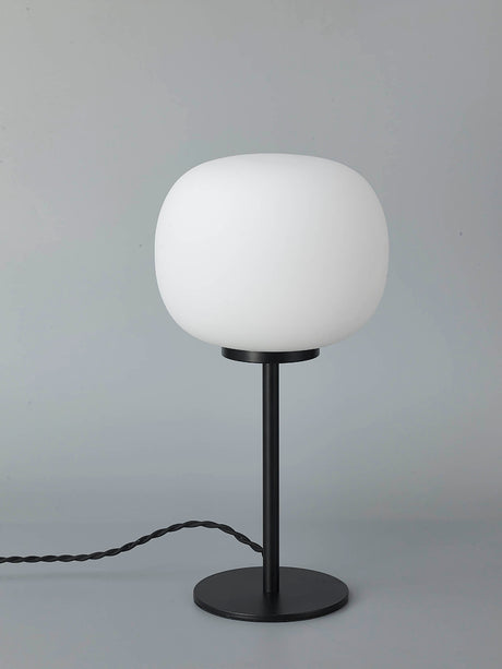 Cunnington Medium Oval Ball Table Lamp 1 Light E27 Matt Black Base With Frosted White Glass Globe