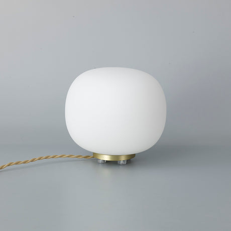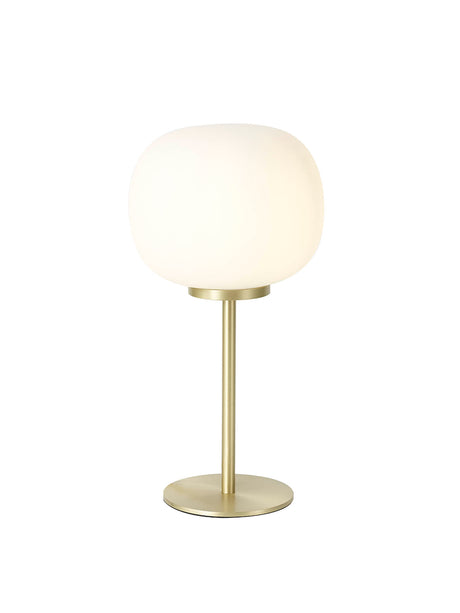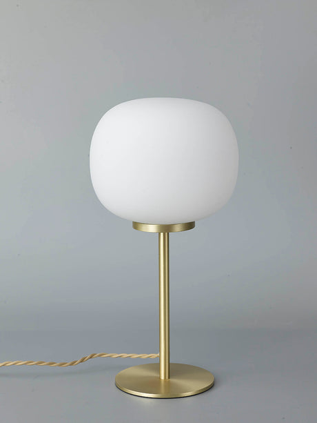 Cunnington Small Oval Ball Table Lamp 1 Light E27 Satin Gold Base With Frosted White Glass Globe
