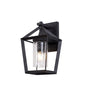 A pentagonal prism with open faces created the angled outline of this outdoor IP54 rated wall lamp, Docherty. The dark anthracite finish is suitable for outdoors, while the protected E27 lamp holder is surrounded by a captivating dimpled, clear glass cylinder.