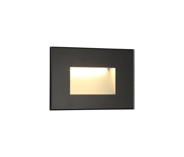 Kerr Recessed Rectangle Glass Fronted Wall Lamp, 1 x 3.3W LED, 3000K, 145lm, IP65, Black, 3yrs Warranty