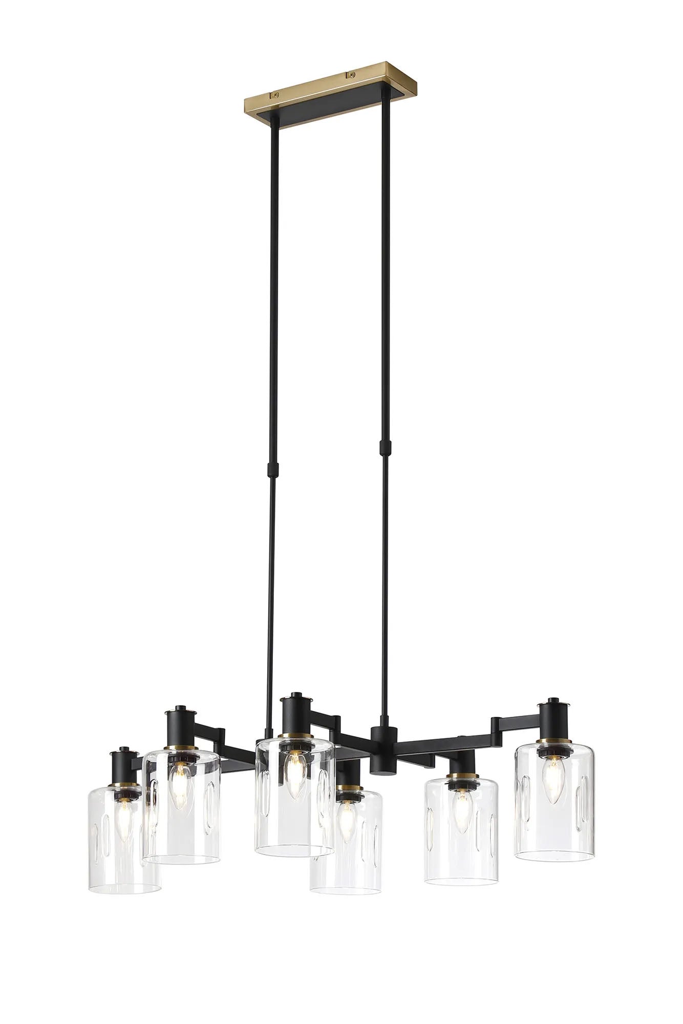 Adamson Swing Arm Telescopic Linear Pendant 6 x E14 Brass/Satin Black/Clear Uniform Dimple Cylinder Glass