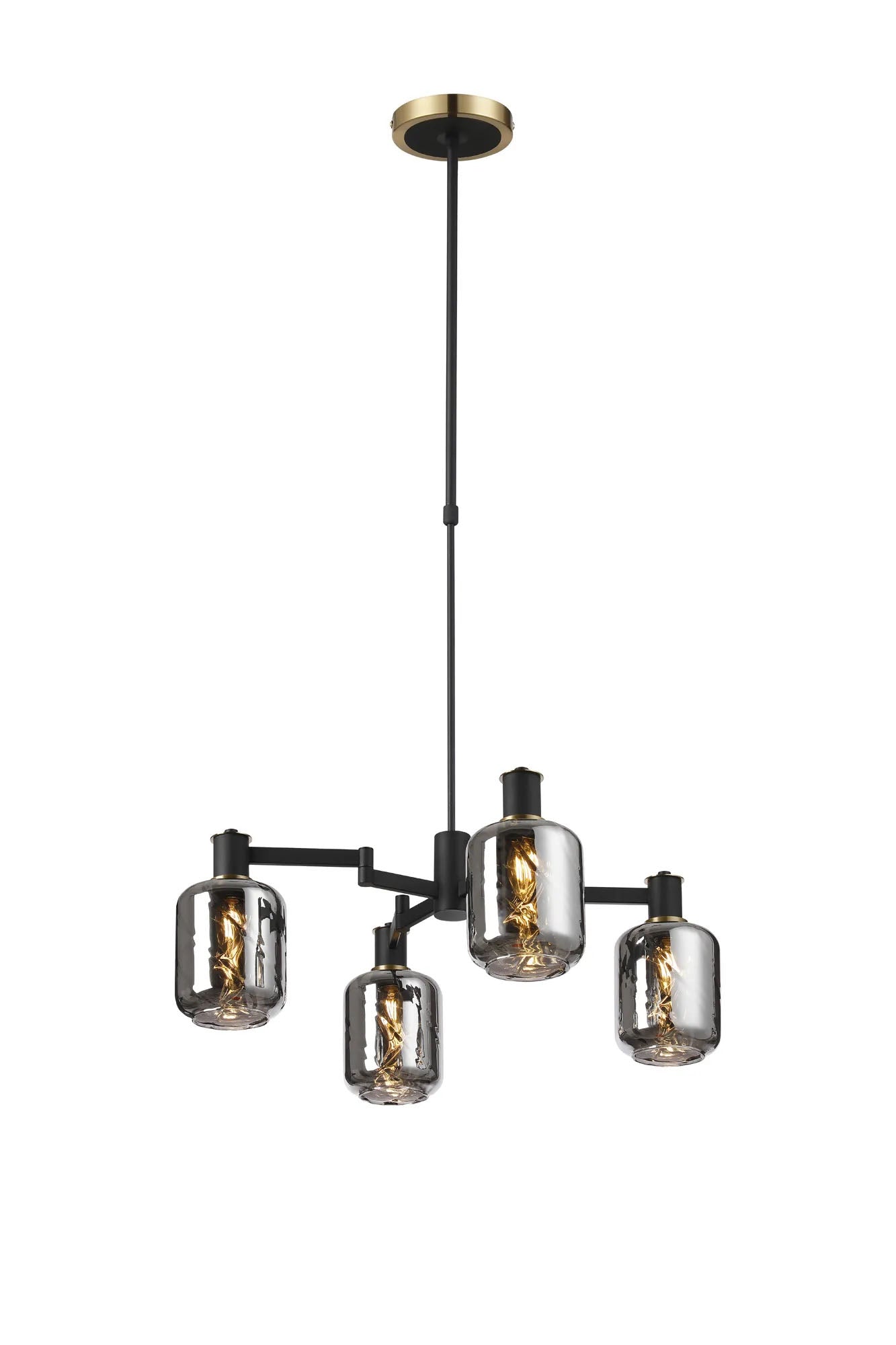Adamson Swing Arm Telescopic Pendant 4 x E14 Brass/Satin Black/Smoke Twisted Cylinder Glass
