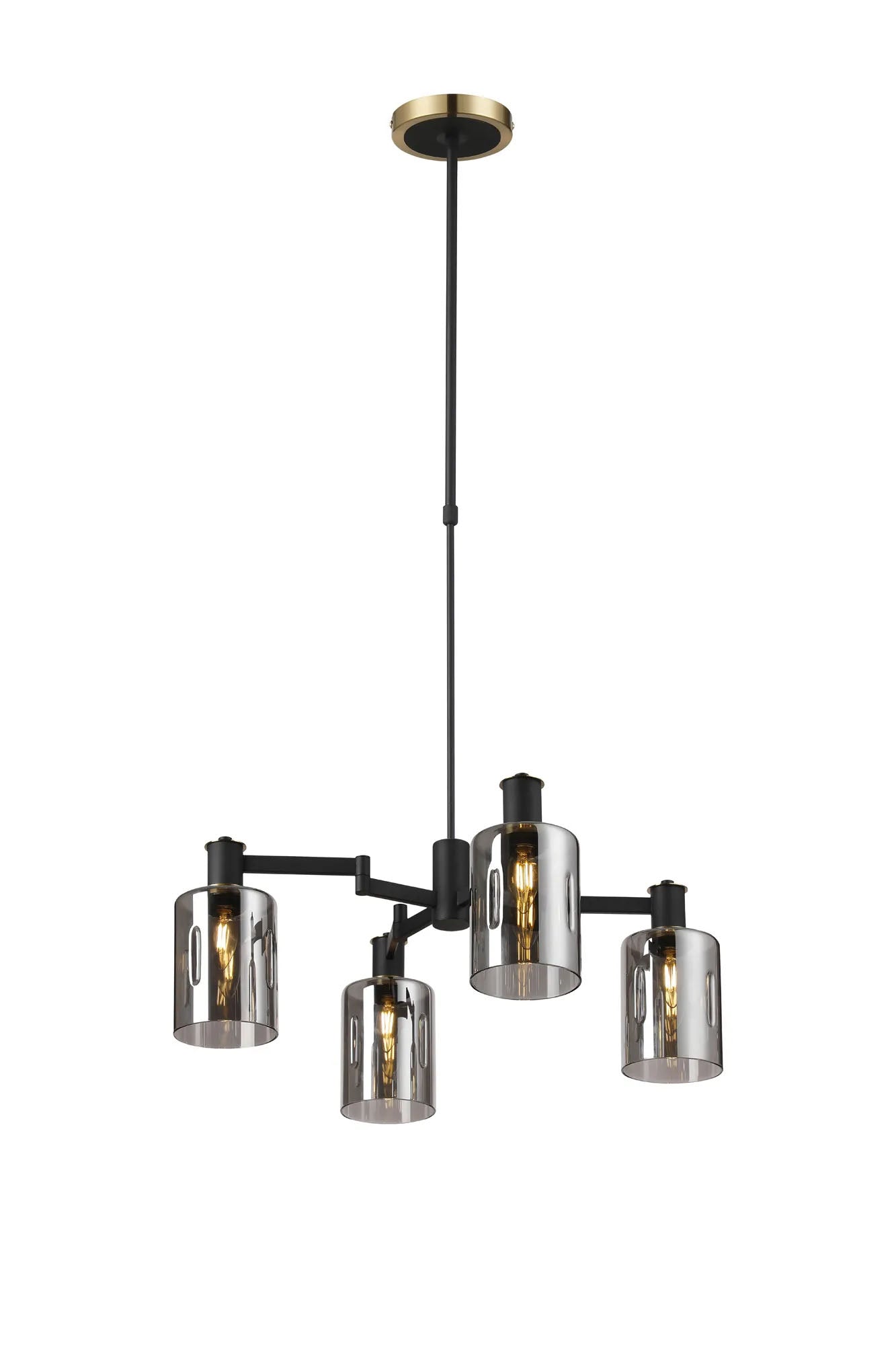 Adamson Swing Arm Telescopic Pendant 4 x E14 Brass/Satin Black/Smoke Uniform Dimple Cylinder Glass