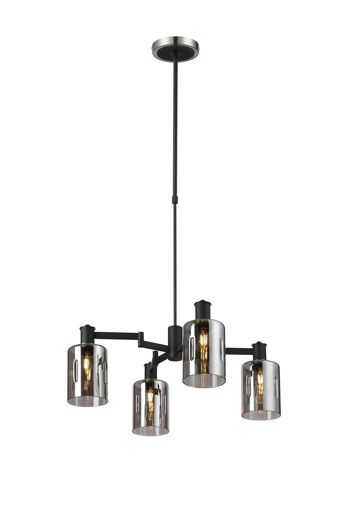 Adamson Swing Arm Telescopic Pendant 4 x E14 Satin Nickel/Satin Black/Smoke Uniform Dimple Cylinder Glass