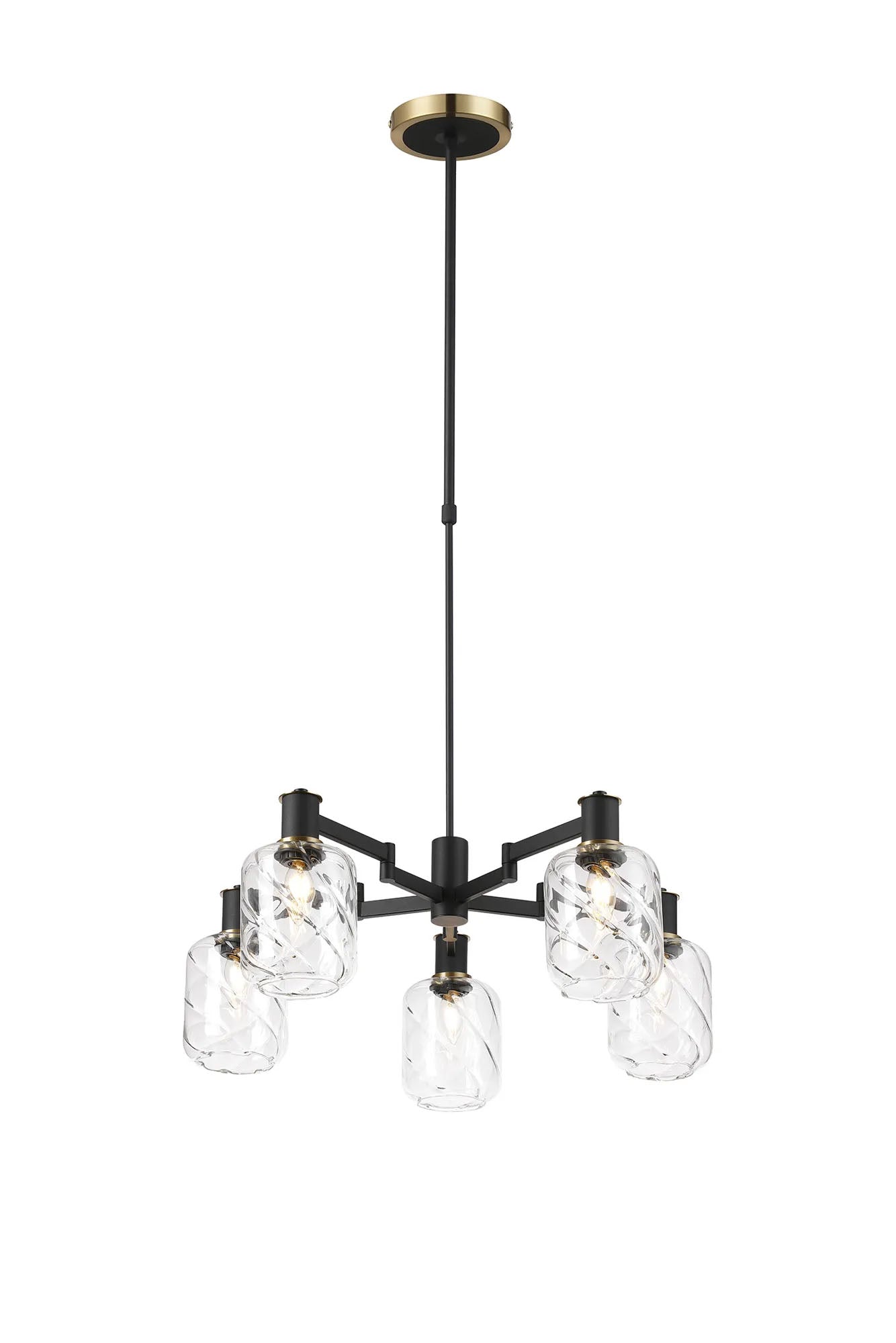 Adamson Swing Arm Telescopic Pendant 5 x E14 Brass/Satin Black/Clear Twisted Cylinder Glass