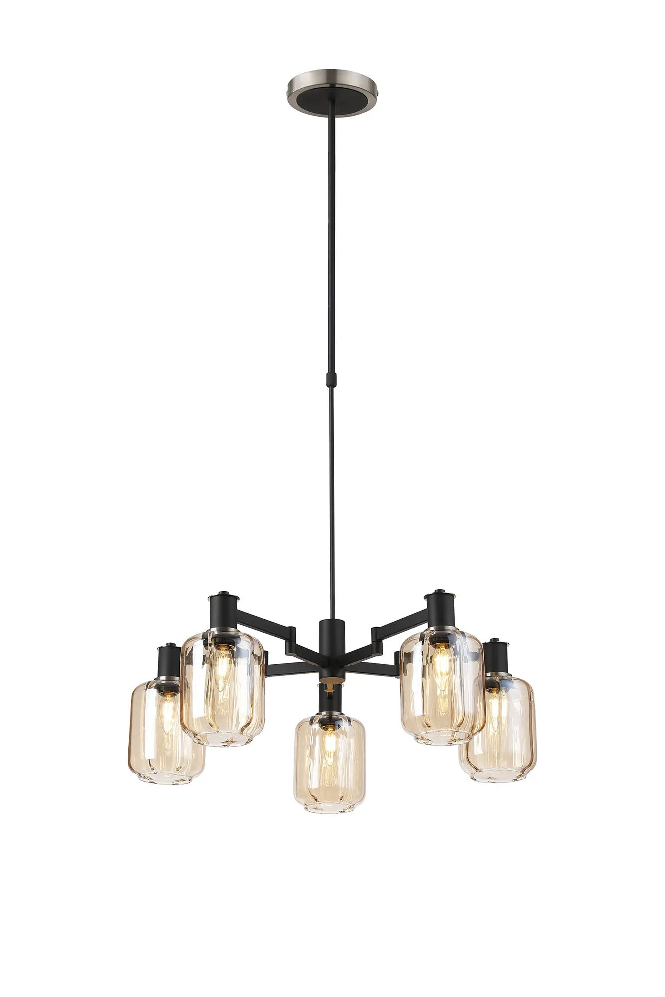 Adamson Swing Arm Telescopic Pendant 5 x E14 Satin Nickel/Satin Black/Amber Striped Cylinder Glass